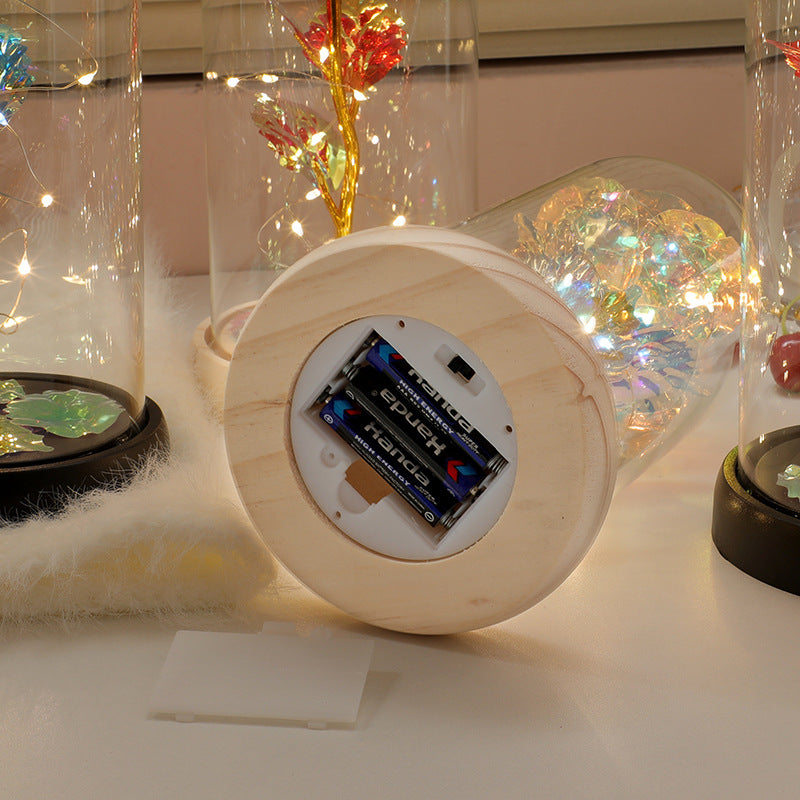Light color: Color (solid wood base glass cover) pink gift box, blue (solid wood base glass cover) pink gift box, red (solid wood base glass cover) pink gift box, color (black plastic base glass cover) pink gift box, blue (black plastic base glass cover) pink gift box, red (black plastic base glass cover) pink gift box